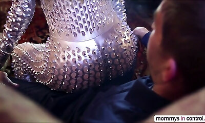 Mature busty booty mom takes big rubber hard-on