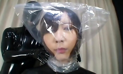Asian rubber nun latex fetish doll strokes pipe