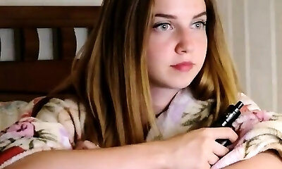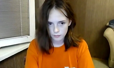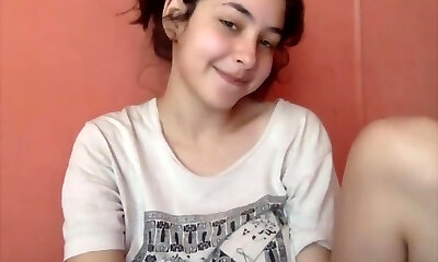 19 year old busty webcam girl with innocent face touches her big natural ti