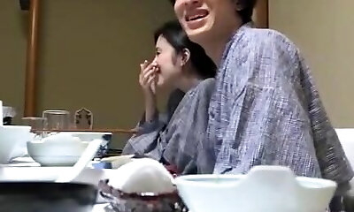 Gamine damsel Mai Shimizu唤醒她的男朋友在晚上被骨